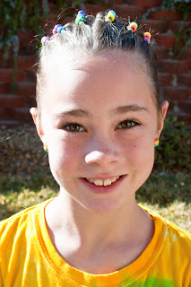 We wanted to use some fun pony beads that we found at the store a while back so we decided to create a rainbow out of them. Here is a video showing you how to apply and secure the beads to the hair: